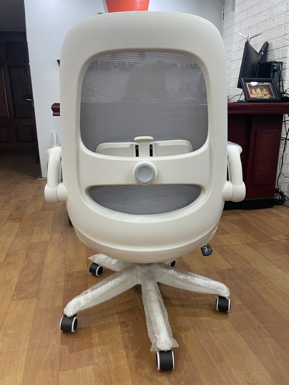 Đệm ghế bằng cao su non êm ái và có ốp đệm bằng nhựa, tựa ghế bọc vải lưới êm thoáng. Ghế sử dụng bát gật gù.